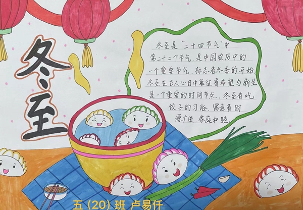 冬至,是岁末的一份礼物。通过这次主题活动,同学们不仅体验到了冬至的文化内涵,也加深了对中国传统文化的了解,更在心灵深处种下了一颗传统情怀的种子。