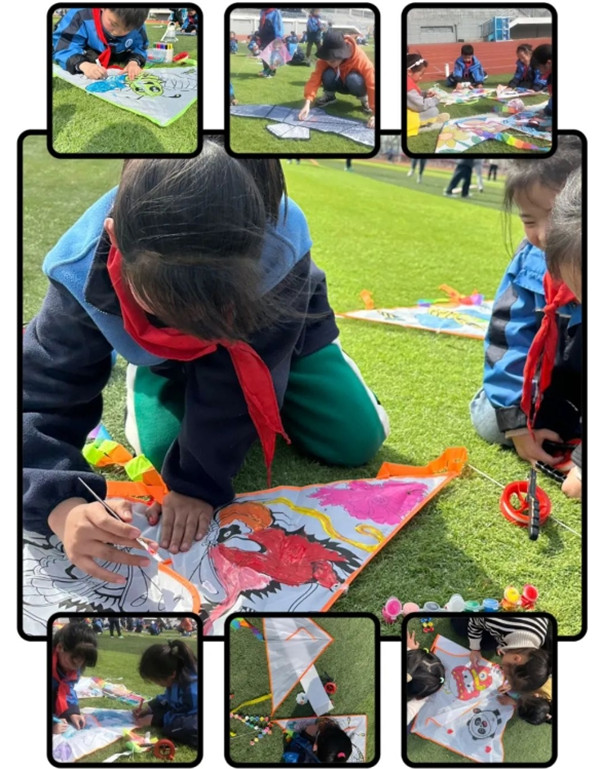 五颜六色的画笔描绘线条,七彩的颜料渲染色彩。可爱的小猫、神气的火箭、漂亮的蝴蝶……多彩的童心世界,跃然“筝”上。