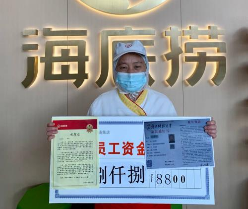 杨勇是海底捞浙江温岭店的一名后厨员工,今年8月,孩子如愿考上理想的大学。店经理带给他一个惊喜,当年考上大学的孩子,公司会给予8800元的奖学金。由于家里经济条件拮据,奖学金的发放让孩子的学费和住宿费有了着落,让杨勇减轻了不少压力。