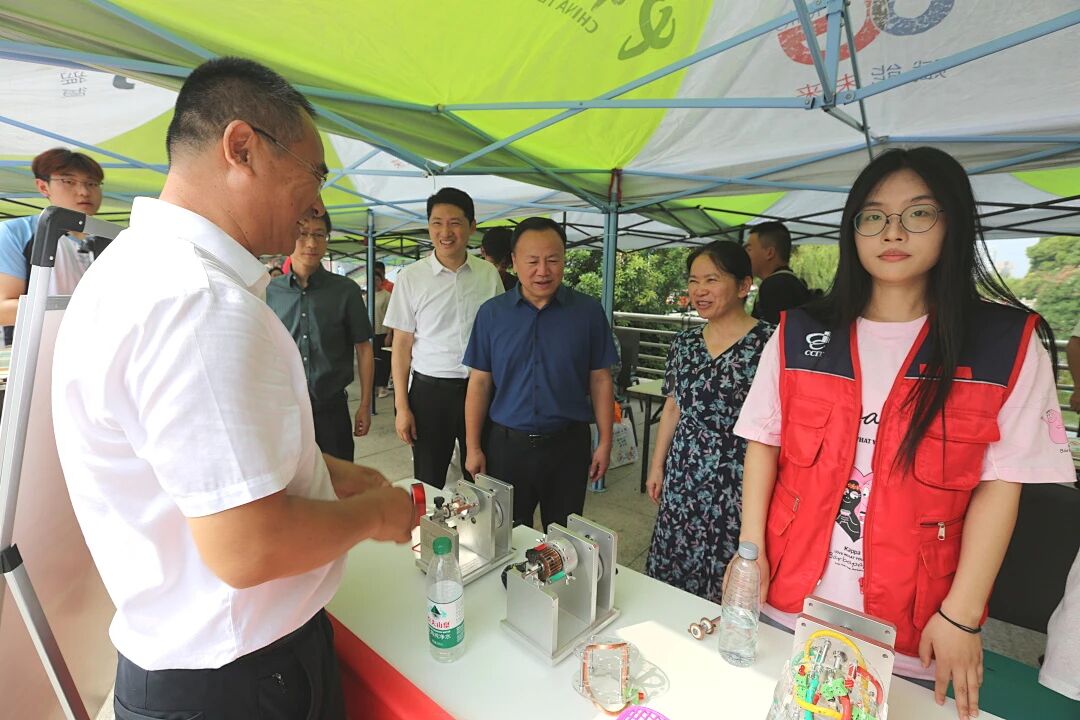 近日,常州信息职业技术学院2025级新生报到现场人头攒动。智能装备学院展台前,一台透明外壳的异步电机教具引来阵阵惊叹。阳光透过电机,内部齿轮的转动清晰可见。党员教师嵇明军俯身向围拢的新生和家长讲解:“这台教具从创意构思、样品试制到批量生产,党员教师带着学生泡在实验室共同研发,现在企业年订单超200套,真正实现了从讲台到市场的跨越。”这生动一幕,正是该校“党建引领产教融合”的鲜活注脚。此前,该校“智匠先锋”引领双创人才培养的实践范式荣获江苏高校党建工作机制创新类一等次。