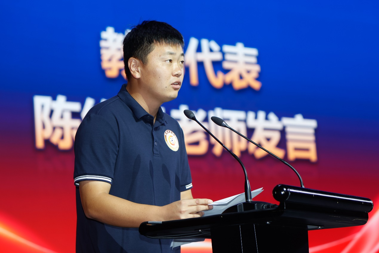 体育部曹翌文老师结合自身参与“苏超”联赛的经历,分享了“人生就要勇敢出发”“青春就要尽情展示”“传承坚持不懈体育精神”的感悟,鼓励新生不畏挑战、全情投入、团结协作。