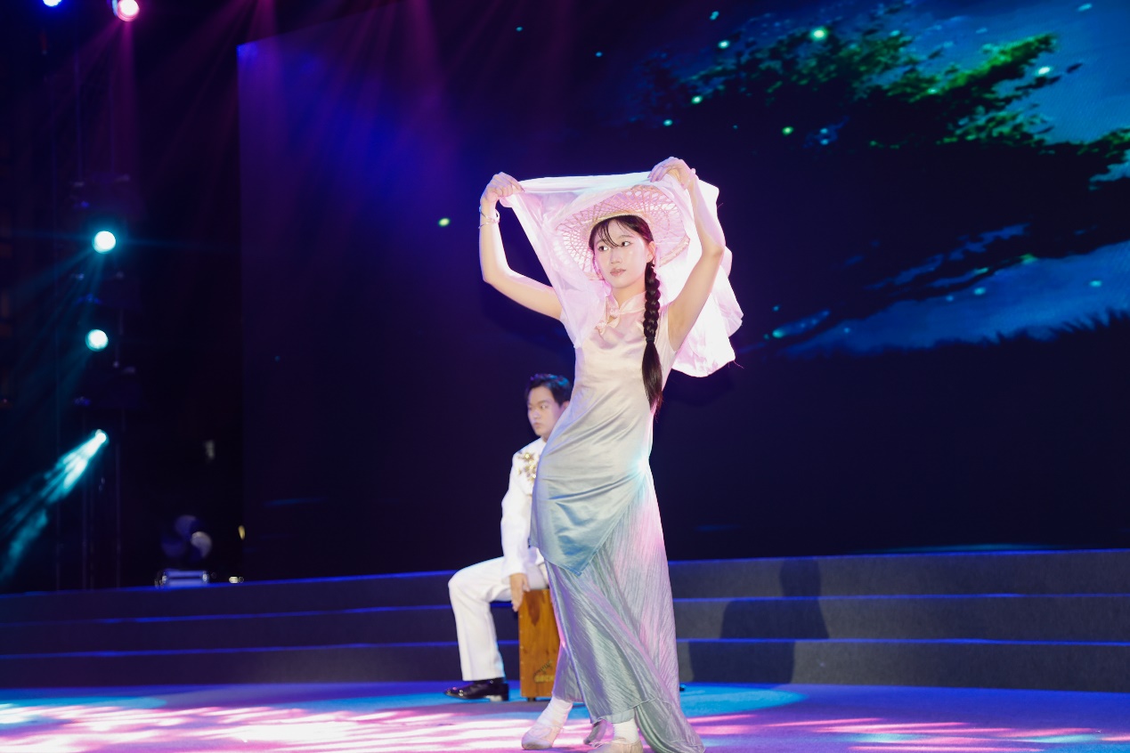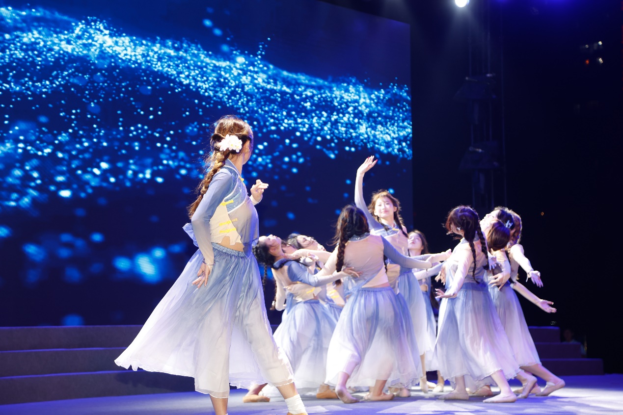 晚会以骄阳舞团科技感十足的光影舞蹈《魔幻光影》拉开序幕,围绕“常信有你”“青春有你”“未来有你”三大篇章展开。蓝色梦想合唱团的《我喜欢》、声浪器乐团民乐合奏《兰亭序》、古典舞《流光叙》等节目,展现传统与现代的艺术对话;师生跨界合作成为亮点,教师与学生共同演绎《岁月》《真心英雄》等节目,晚会还为当天生日的5名新生送上暖心祝福。泰国留学生献唱《茉莉花》,广播台深情朗诵《欢迎来常信》,校园之声广播台与雅韵礼仪部联袂呈现的音诗画《只此青绿》,展现多元的校园文化。最后,在《歌唱祖国》的恢弘合唱中,晚会圆满落幕,为新生扬起新征程的风帆。