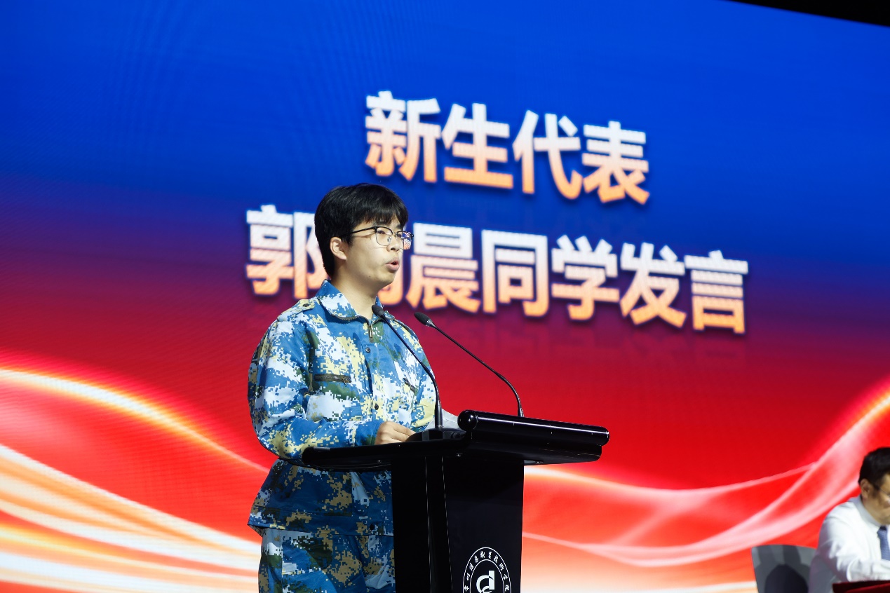 新生代表、软件与大数据学院常大软件251班郭雨晨同学发言,表达了初入常信的喜悦与对未来的憧憬,倡议全体新生不忘初心、勤学笃行,勇于尝试、开拓创新,包容互助、共同成长,秉承“厚德勤业”校训,书写无愧于时代的青春华章。
