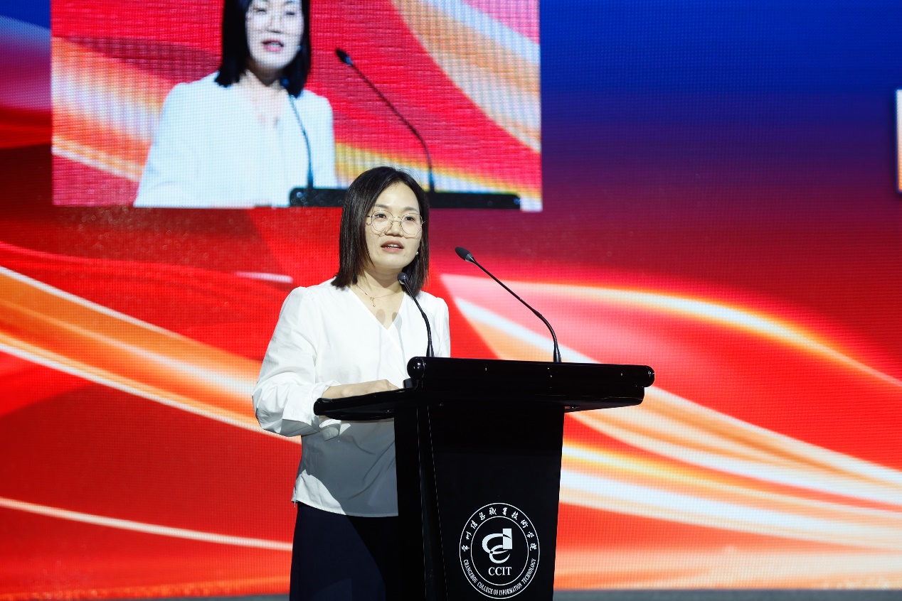 教师代表数字创意学院陈维艳老师则从“涵养优良品德,做有温度的‘追光者’”“练就过硬本领,做知行合一的‘实干家’”“立定鸿鹄之志,做数字时代的‘弄潮儿’”三个方面对新生提出期望,并以自身带领学生进行牛仔面料创意创业的生动案例,阐释了“知行合一”的真谛。