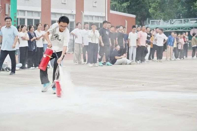 无锡市第六高级中学槐古校区以“趣味+实战”相结合形式开展消防演练。警报声响,同学们第一时间关电源,弯腰沿壁快速有序撤离到安全区域。灭火接力赛中,同学们以“一提、二拔、三握、四压”的标准动作,对模拟火源进行扑救。