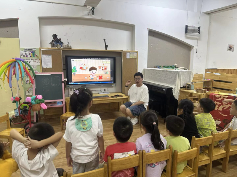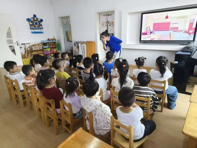南京市秣陵中心幼儿园聚焦“防灾减灾+日常安全”,各班开主题班会:用卡通道具模拟“红绿灯过马路”教交通安全,通过触摸灭火器模型讲消防知识,结合生活场景提醒用电用火用气注意事项,以“可视化+互动化”让安全知识入脑入心。