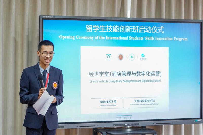 华裕良代表无锡科技职业学院向远道而来的泰国师生致以热烈欢迎。他在致辞中介绍,作为江苏省中国特色高水平高职院校建设单位,学校始终坚持国际化办学战略,积极推动职业教育对外开放。本次“经世学堂”技能创新班的举办,是学校依托酒店管理与数字化运营专业优势,在“产教融合、校企合作”专业特色基础之上,拓展国际人才培养模式的又一重要实践。他勉励泰国学子珍惜此次来华学习机会,积极融入校园生活,努力提升专业技能与跨文化交流能力,成为中泰友谊的见证者与传承者。