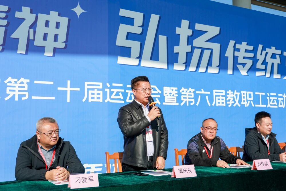 升旗仪式结束后,学校党委副书记、副校长赵学洪致开幕辞。他表示,无体育不教育,同学们要走出宿舍,走进操场,让运动成为习惯,让生命更加精彩,让“动起来”“活起来”“乐起来”的校园成为健康成长、快乐成才的丰厚沃土。