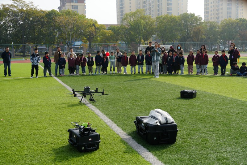 科技之旅在无人机的“振翅”中拉开序幕,无人机展演成了“人气C位”:从“开机演示”环节里,孩子们跟着老师的讲解,摸清了无人机“小身体”里桨叶、电池的作用,从“桨叶-电池-脚架”的结构拆解,到起飞前老师们对信号、电量的细致核查,孩子们的目光追随着飞行器的起落,读懂了“悬停平衡”里视觉定位系统的巧思——电机声音的细微变化,这也成了他们感知科技逻辑的独特线索。当无人机化身“物流小快递员”,精准完成“丢沙包”式物资投送,演示出山区运书、送药的应用场景,这让科技的种子在童心中发芽;拟人化的“电力巡检”环节更添趣味,主持人模拟“电线杆老爷爷”,无人机则以“医生”身份完成环绕“刷锅”动作,电力工人的日常作业,借由科技变得直观可感。最后,飞行器掠过孩子们头顶的“模拟测绘”环节,让航拍与建筑设计、环境检测的关联,成了孩子们眼里最生动的“天空课堂”。现场增设的穿越桩体验区,更让孩子们亲手触摸到操控“飞机”的乐趣。