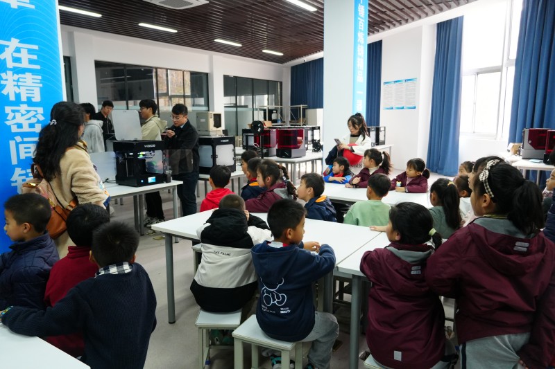 活动的尾声,同学和家长们来到数字装备学院的3D打印实训中心,这里成了孩子们眼中的“造物魔法屋”。陈列架上形态各异的成品,是“想象具象化”的直观注脚;而打印机喷头的精准移动、耗材的层层堆叠,则将“增材制造”的原理,变成了看得见的“未来工艺”。从“图纸”到“实物”的蜕变,让孩子们读懂——科技的本质,是让创意拥有落地的力量。