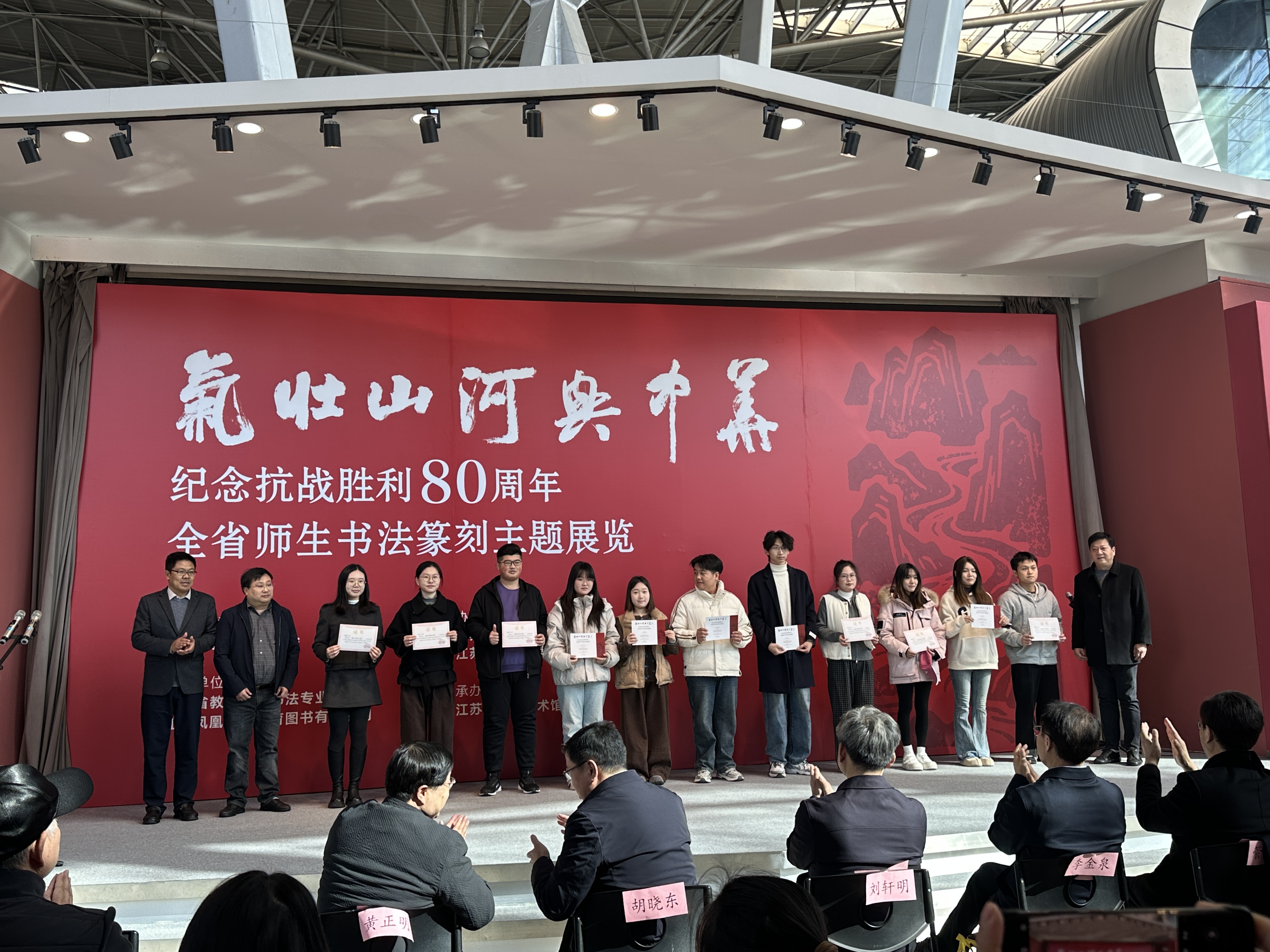金菊吐蕊承先烈,翰墨流芳展未来。2025年11月25日上午,“气壮山河兴中华”——全省师生纪念抗战胜利80周年书法篆刻主题展在江苏省现代美术馆隆重开幕。本次活动是江苏省教育系统师生深入学习贯彻习近平文化思想,推动中华优秀传统文化创新性发展的生动实践,更是以笔墨铭记抗战历史、致敬先烈,凝聚奋进力量,助力江苏书法教育事业薪火相传、繁荣发展的具体行动。
