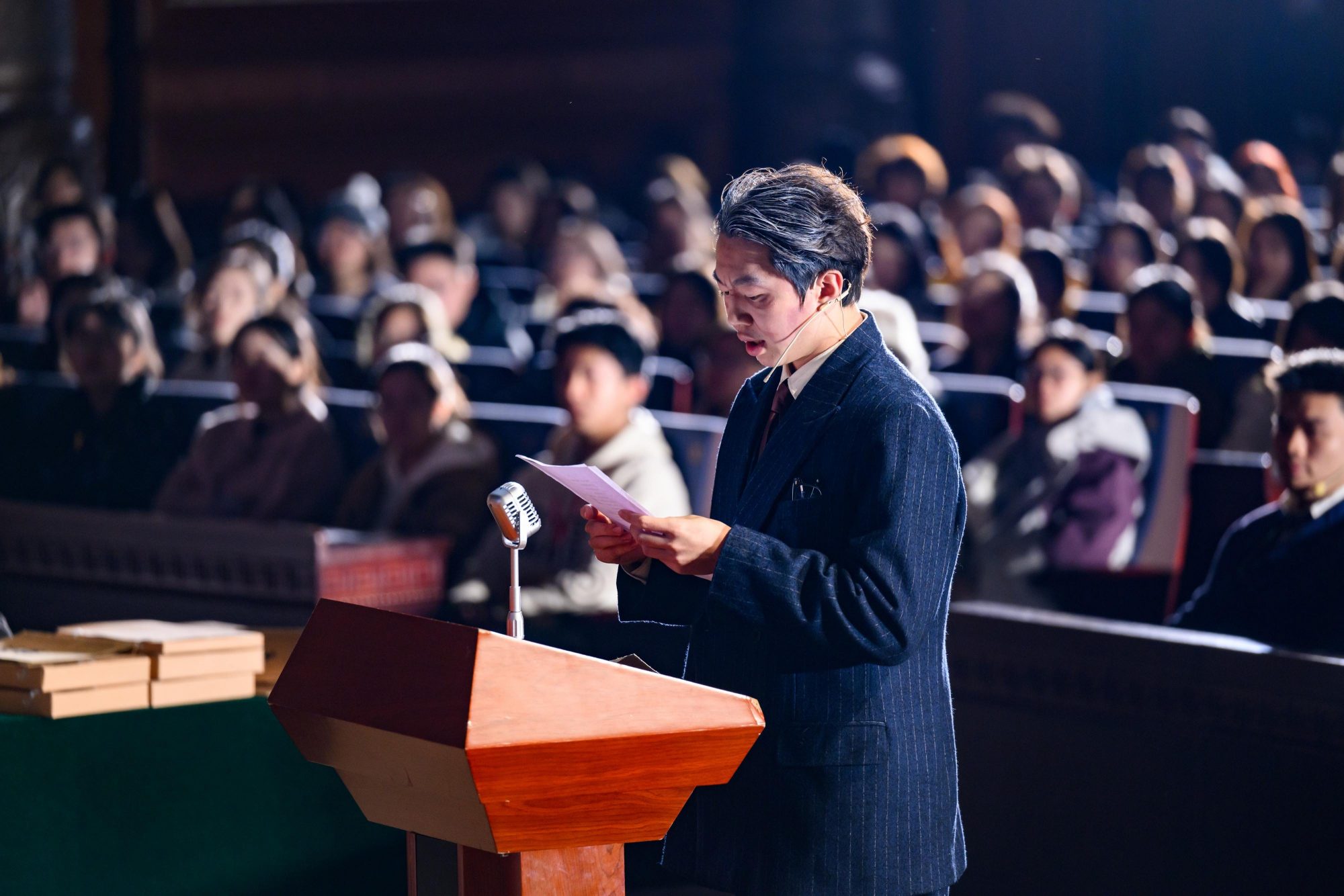 饰演板垣征四郎的内部审计学院本科生唐煜博对此感受尤深:“扮演一个反面角色,在心理上是非常煎熬的。你需要去理解而非认同他的逻辑,去呈现他的狡辩。每次站上舞台,当人们为历史动容,或愤怒,或悲痛,我都要强行咽下泪水,而去全力演绎他的罪恶与轻佻。这让我更深刻地认识到,扮演‘恶’是为了让世人更清晰地识别‘恶’,更深刻地理解正义。”