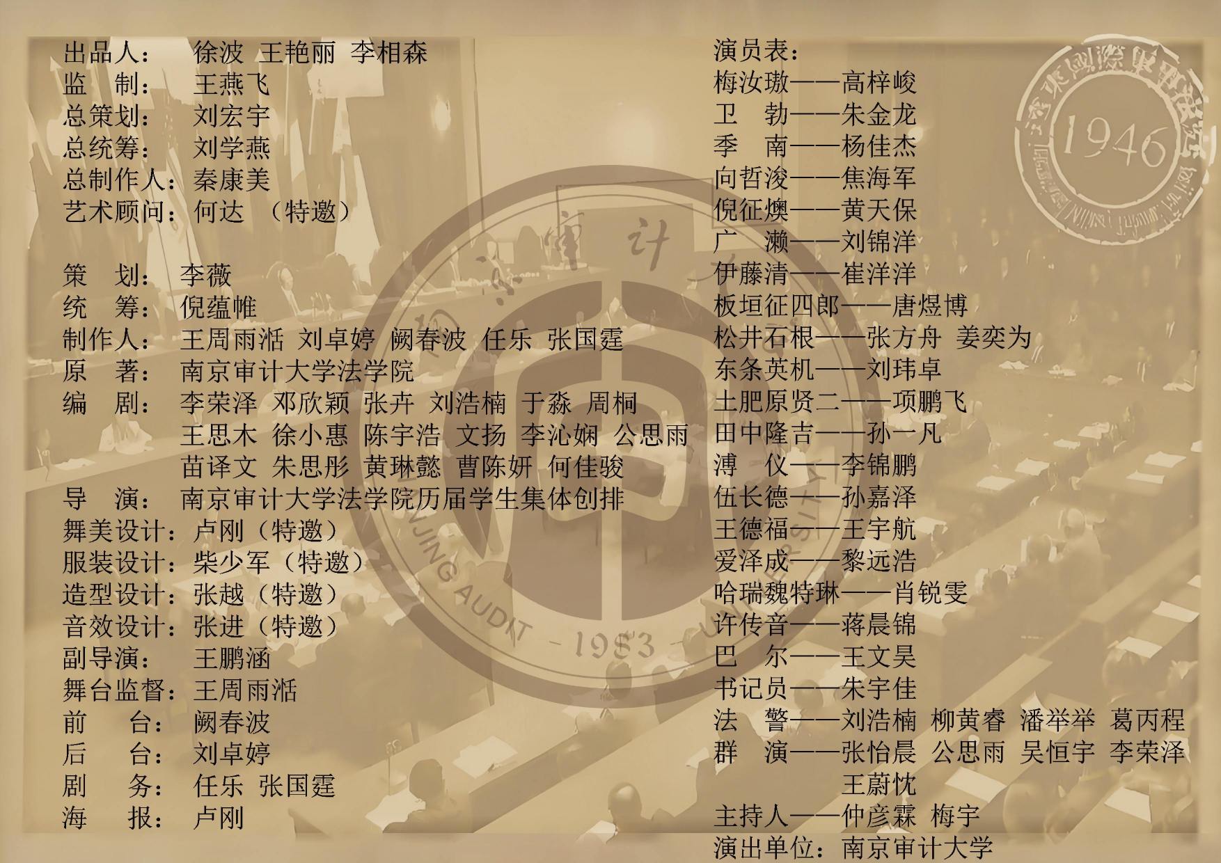 《模拟东京审判》舞台剧将继续作为南京审计大学法学院的品牌思政活动传承下去,未来将面向更广泛的社会公众进行巡演。这法槌的回响,穿越七十九年风雨,依然清澈,依然坚定,在一代代青年心中,将荡起永不熄灭的波澜。