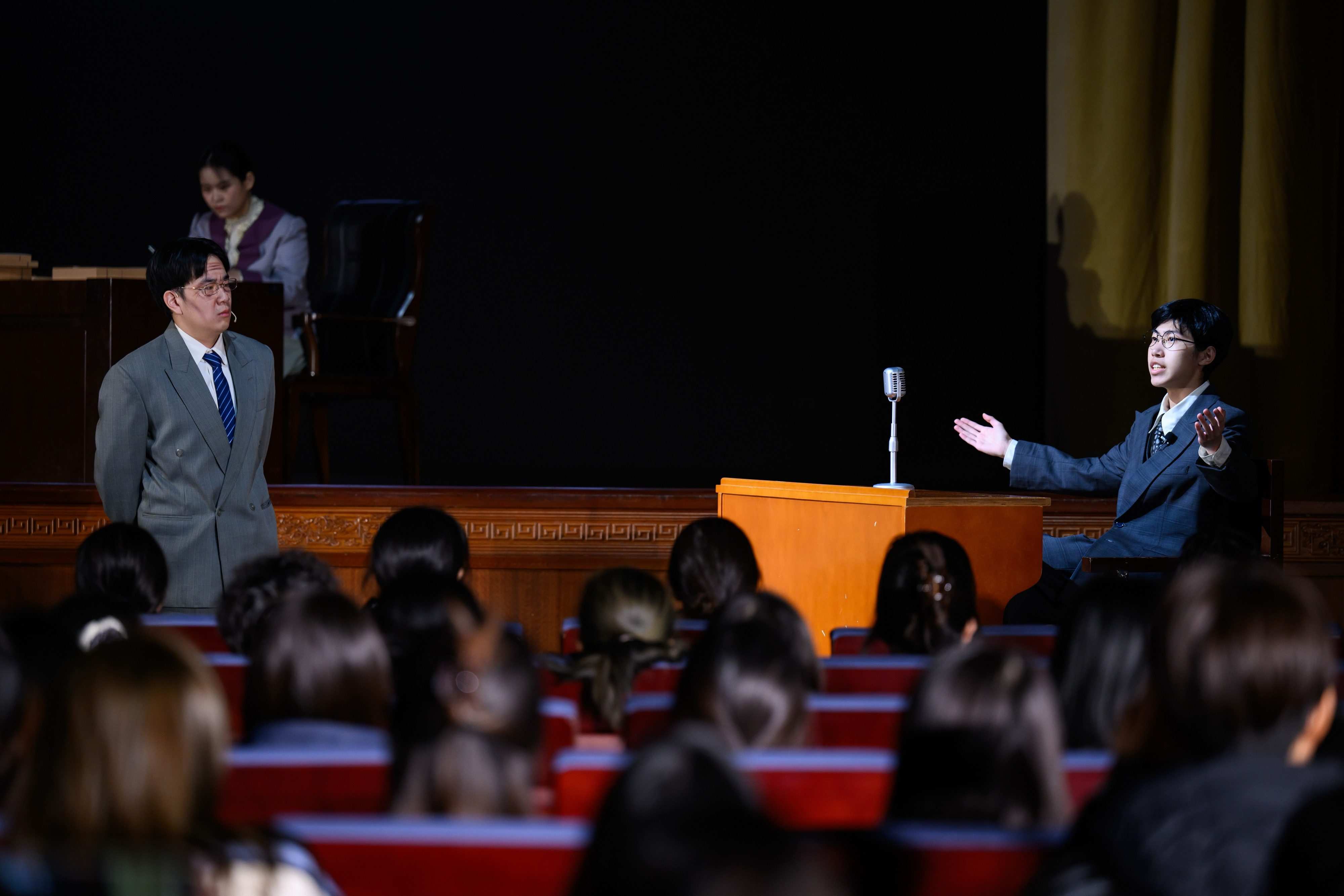 《模拟东京审判》的演员是从全校各个专业招募的,目的就是面向全体学生开展沉浸式的“历史公开课”与“思政实践课”。这种全校招募的模式,其最终成果并不仅仅是一场成功的演出展示,更是一次生动的教育创新。它让历史从书本中立体走出,让正义在思辨中愈发明晰,最终在每一位参与和观看的青年心中,埋下关于责任、理性与和平的种子。