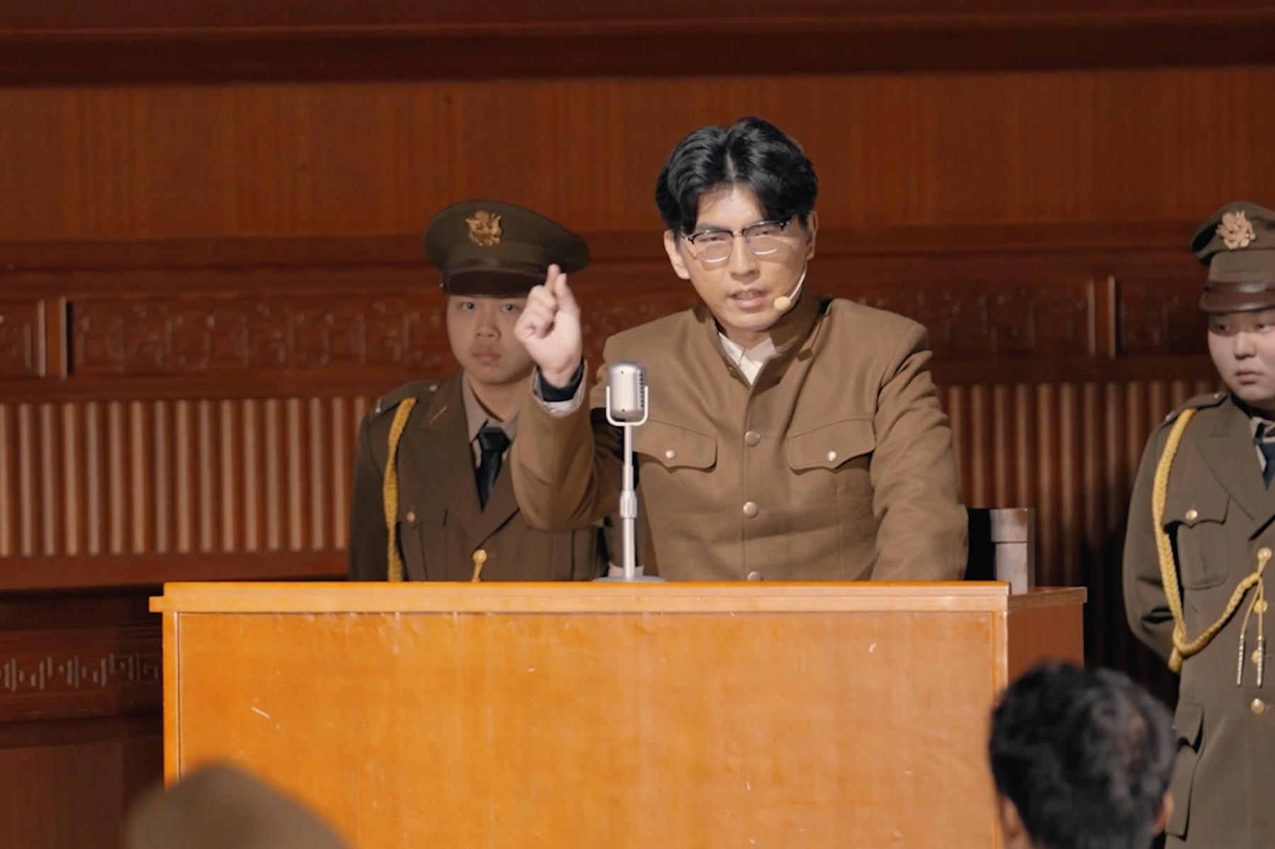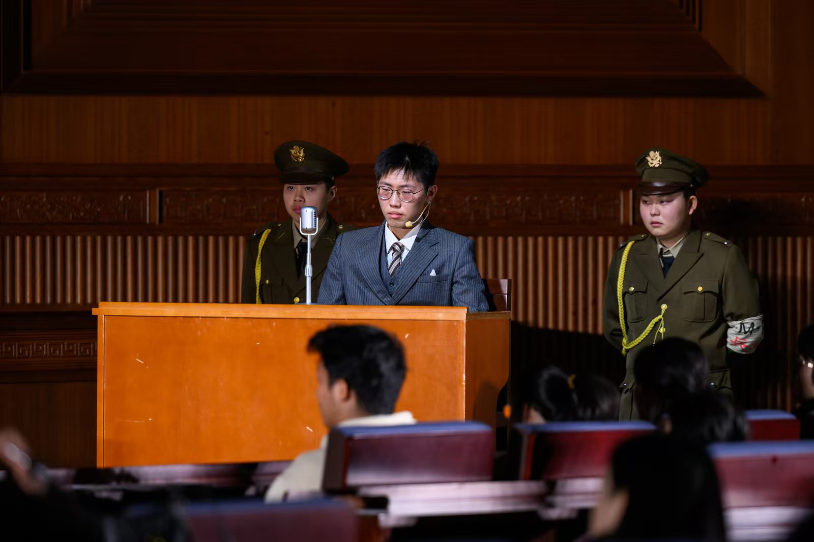 “当我穿上检察官的服装,念出那份饱含血泪的起诉书时,我仿佛能感受到当年中国人民乃至全世界受难者的悲愤与对正义的渴望。”饰演中国检察官倪征燠的法学院本科生黄天保坦言。为了这句台词,他查阅了大量历史影像,试图捕捉那位中国法官在异国法庭上为民族苦难发声时,那份克制而磅礴的情感。