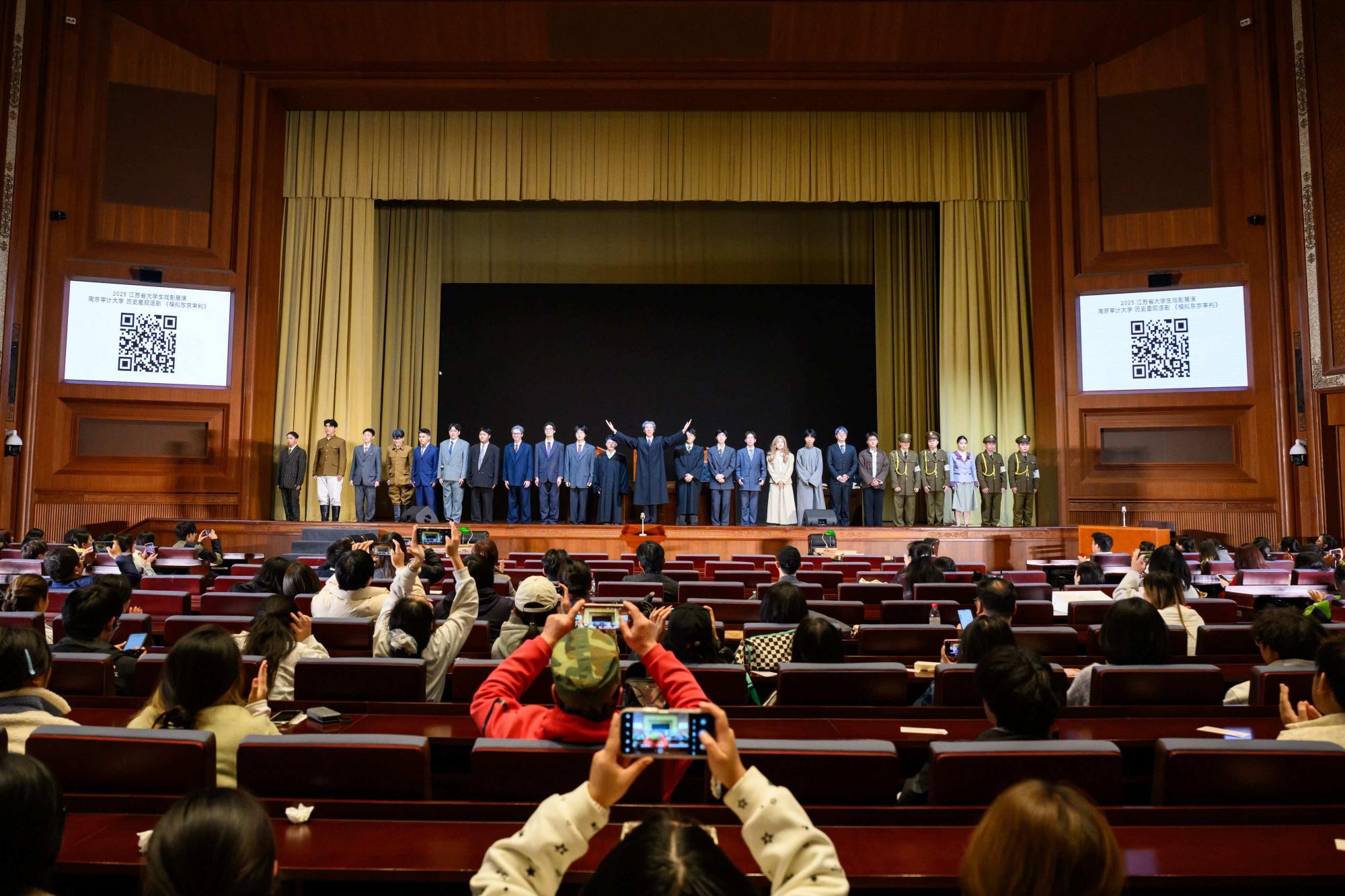 十七年一脉相承,这部剧已不再是一场寻常的学生活动,而成为一届届南审学子大学岁月中深刻的精神印记。十七年间,一批又一批南审学子怀着滚烫的热忱投身法治宣传,将这份纯粹而坚定的信念,从大中小学课堂、紫金山景区、监狱场所,带到军委审计署等相关单位。他们用青春的演绎唤醒历史记忆,以真诚的讲述传递和平信念,践行着“铭记历史、珍视和平”的时代担当。