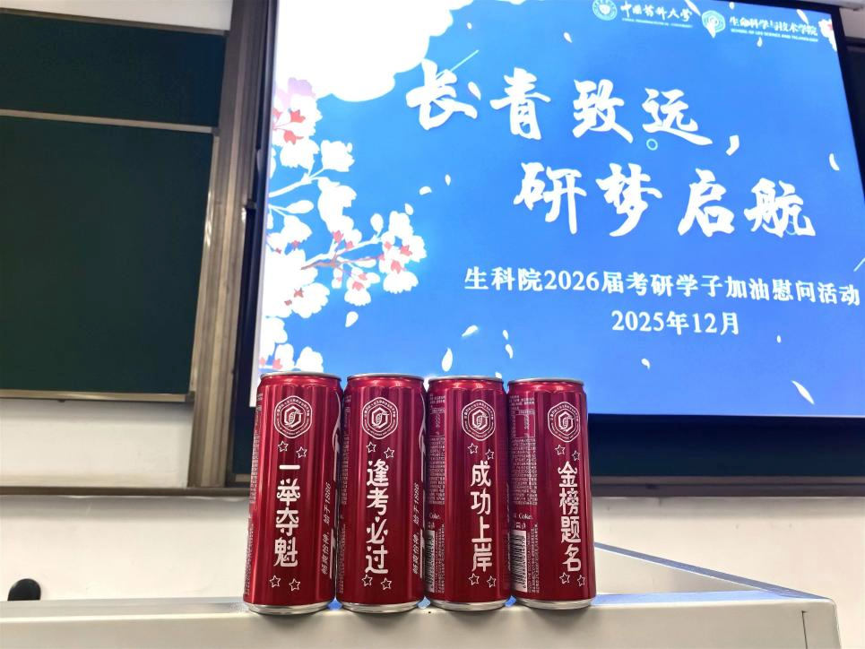 中国药科大学举办“长青致远,研梦启航”考研学子暖心慰问活动,老师与考研学子面对面交流,询问备考进度与生活状况,分享实用备考策略,鼓励大家坚定信念、沉稳备考,并为研考学子送上印有学院标识的可乐、考研文具、零食等满载关怀的加油礼包。