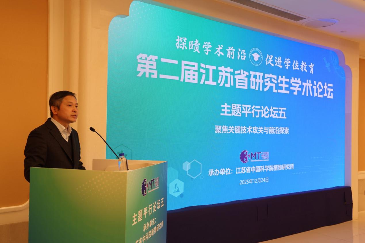 12月24日,江苏省第二届研究生论坛在南京圆满落幕。本次论坛吸引全省高校及科研院所319名研究生代表参会,创新采用“三分钟+单张静态PPT”的学术汇报模式,鼓励学子以通俗化语言阐释科研项目的核心价值与创新发现,充分展现青年科研群体的学术素养与思维活力。其中,专门面向科研院所研究生设立的第五平行分会场(科研院所专场),聚焦关键技术攻关与前沿科学探索,由江苏省中国科学院植物研究所全程承办。