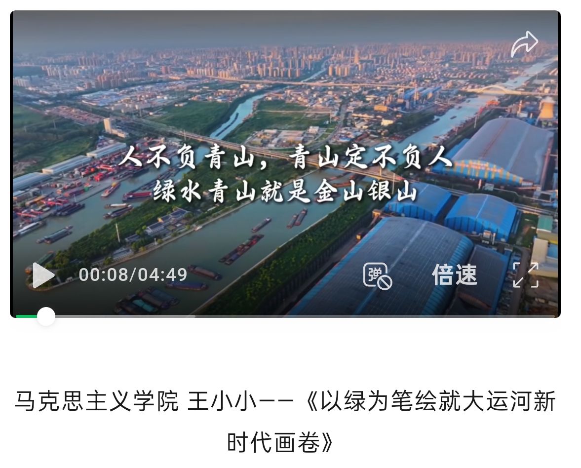 为推进生态文明宣讲的常态化,制作突破时空限制的数字课堂。依托新媒体矩阵,以数字赋能生态文明教育,宣讲团队录制生态文明主题宣传片9个,总时长70分钟,先后发布在微信公众号、视频号等平台,其中《以绿为笔 绘就大运河新时代画卷》作品入选江苏省教科系统工会思政精品微课。