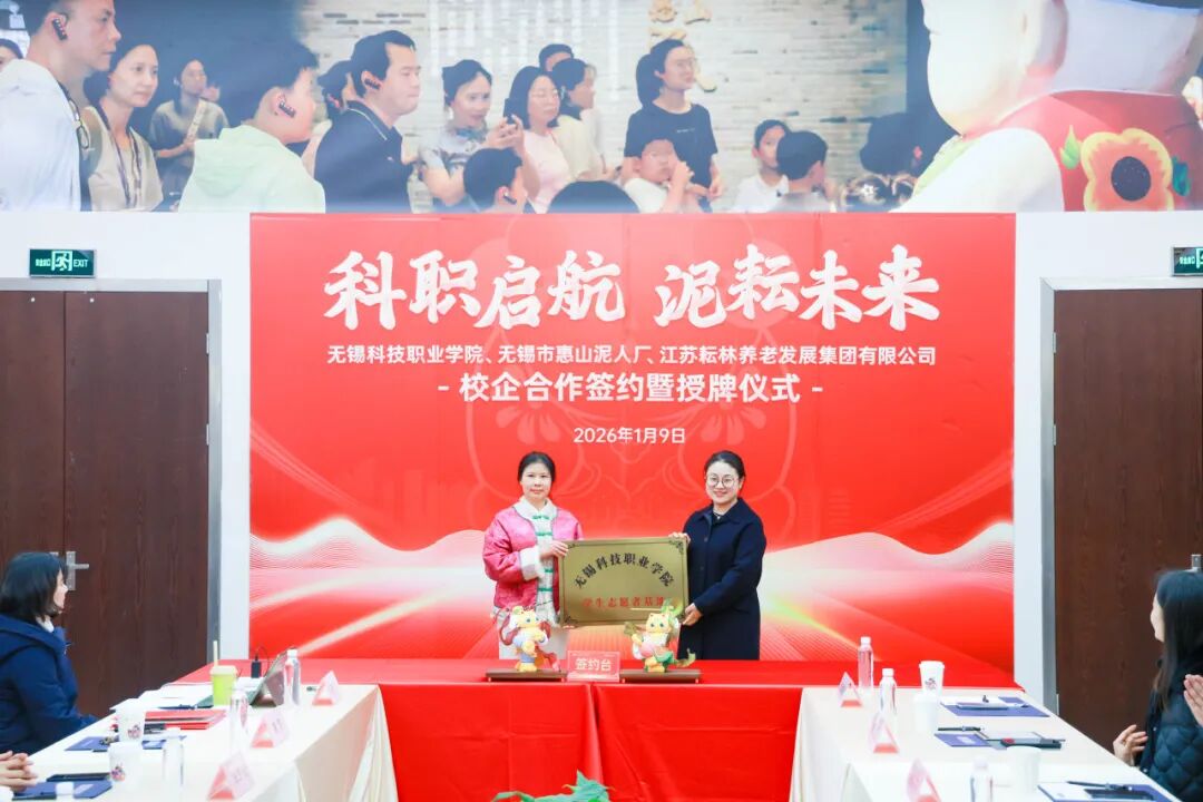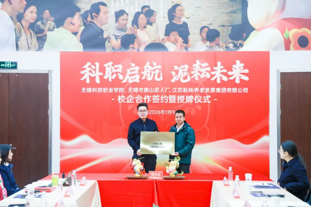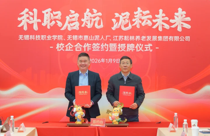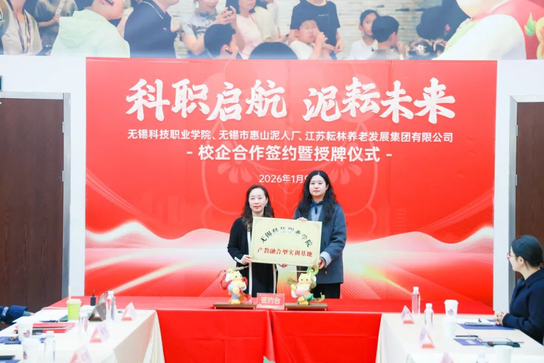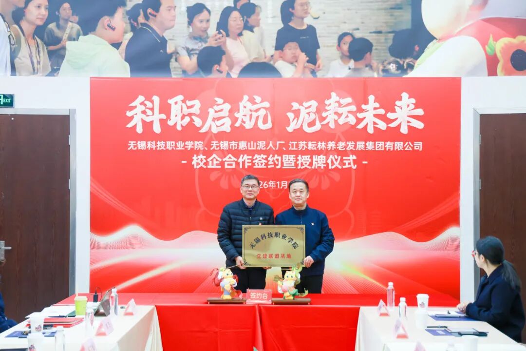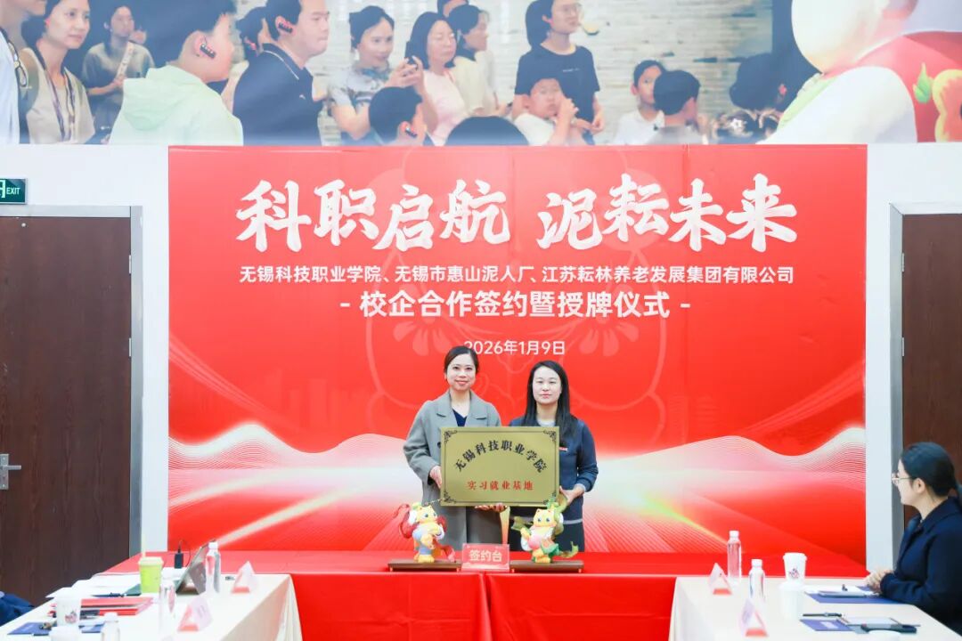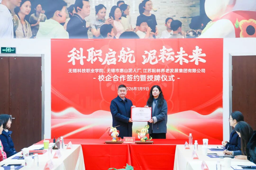 1月9日下午,无锡科技职业学院与江苏耘林养老发展集团全方位战略合作签约暨授牌仪式在中国泥人博物馆隆重举行。校企双方代表齐聚一堂,共同见证这一融合产业、教育、文化的重要时刻。