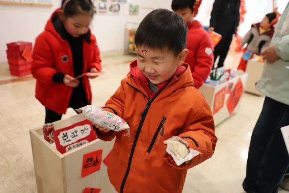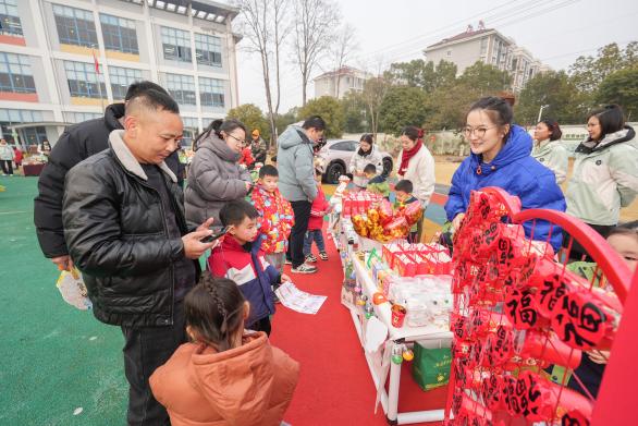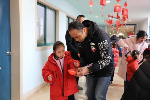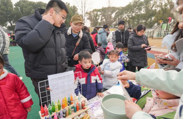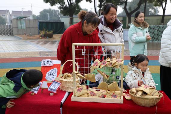 当舞台的锣鼓声渐渐平息,涌向他们自己参与策划和布置的“乡味小集市”。“爸爸快看,那个套圈游戏是我和老师一起画的福马!”游戏区内,孩子们成了绝对的主角。他们的小手用力抛出圈环,指挥着爸爸妈妈协作“运输福袋”,欢声笑语中,完成了一次次亲子默契的冲刺。