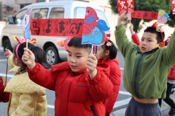 画卷一:童声邀乡邻,暖意漫老街——我们是传递祝福的小马驹