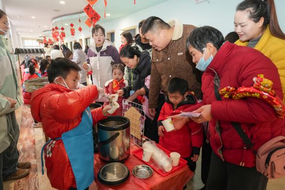 美食市集里,烟火气中满是专注的小脸庞。孩子们踮着脚,在阿姨的指导下认真揉面,将甜甜的馅料包进糯米团。“我做的汤圆,要给奶奶吃!”刚出锅的点心热气腾腾,孩子们吹着气小心品尝:“这就是我们玉祁的味道,甜甜的,暖暖的。”