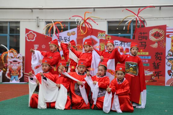乡土浸润中体悟马年韵味,实践体验中传承本土文化。无锡市玉祁中心幼儿园于2026年元月六日开启了一场以“集市入乡园,嬉喜贺新岁”为主题的“村晚”暨庆元旦活动。活动打破园所边界,联动社区资源,以童真为纽带,徐徐铺展一幅乡野教育长卷。在这场属于自己的庆典中奔腾、成长、载福而归,让幼儿园真正成为串联乡村与家庭、衔接传承与新生的精神村落。