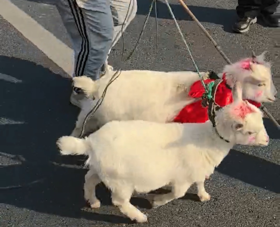 幼儿园的吉祥物“阳阳”和“江江”两只羊宝,也迈着欢快的步子加入了队伍,它们晃着小尾巴跟旁边的小朋友打招呼,有时还会停下来蹭蹭孩子们的小手。沿途的村民们纷纷驻足微笑,孩子们一边走一边挥着小手喊着“新年好”,清脆的童声、欢快的鼓点、小羊的萌态,把新年的喜悦和水乡的温情,一路撒向了街边的每个角落。