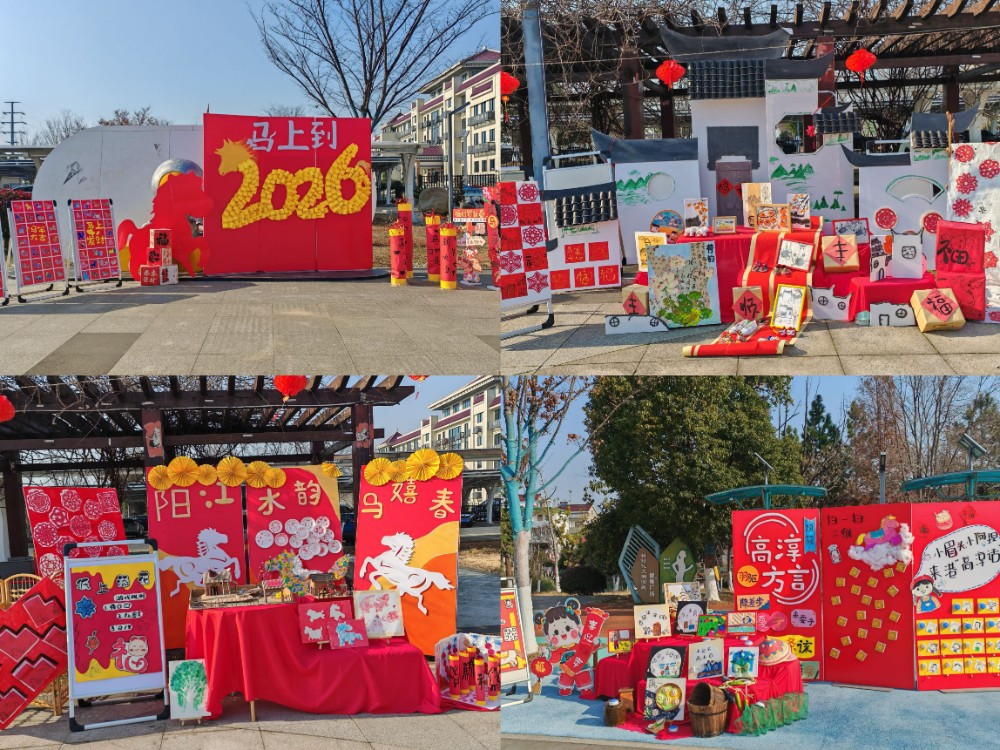 “乡音话马•暖春阳”展区独具特色,高淳方言录音墙、马年方言谜语、水乡童谣音频,让孩子们在听方言猜谜中感受乡音魅力,按下电子按钮便能聆听温情祝福。