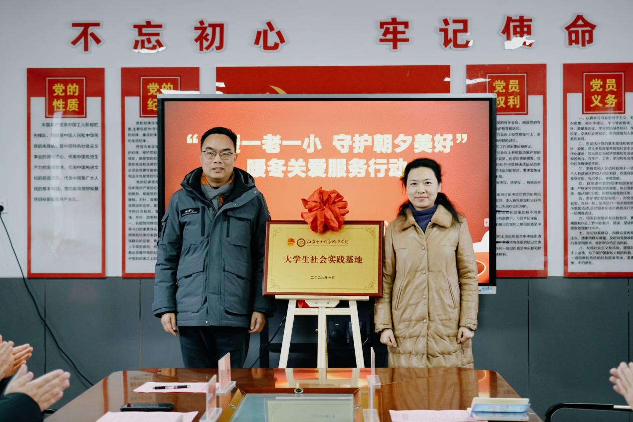 学校还将关爱服务延伸到乡村“一老一小”重点群体,持续深化校地共建内涵。2026年1月,学校联合省委驻淮阴区乡村振兴工作队、马头镇共同启动“情暖一老一小 守护朝夕美好”暖冬关爱服务行动。在码头中心小学,学校领导为品学兼优的困难学生赠送学习用品,并举行大学生社会实践基地揭牌仪式,旨在构建“大中小思政一体化、志愿服务一体化”的育人新格局。启动仪式后,大学生志愿者为小学生们带去了财商启蒙、安全教育和文化趣味课堂,随后深入夏家湖村走访慰问困难老人,送上物资与关怀。此次活动精准对接基层所需,将高校的爱心资源与专业服务送达乡村末端,是学校践行社会责任、拓展服务领域、巩固校地情感联结的又一务实举措,彰显了在助力乡村治理和民生改善上的持续担当。