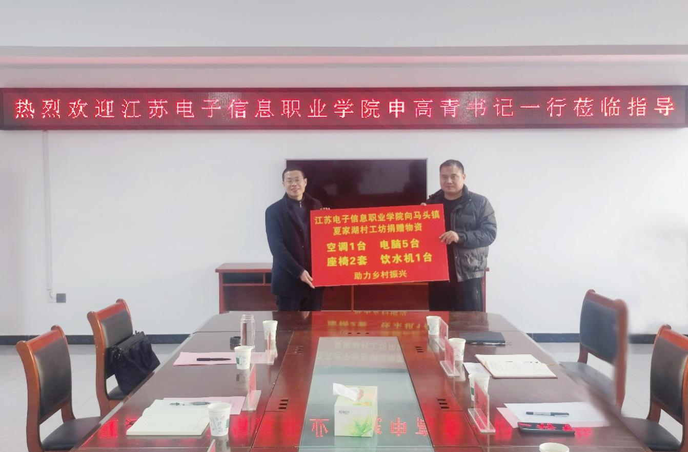 按照省工信厅主要领导关于“努力找准工信部门和乡村振兴契合点”的指示要求,学校在前期深入调研的基础上,将支持夏家湖村“工坊”建设作为精准帮扶的重要切入点。针对该村工业基础薄弱、留守劳动力资源闲置的现状,学校依托自身在电子信息、数字装备等领域的专业优势,以及广泛的企业联系网络,积极协助村集体对接企业资源,探索“企业订单+村民参与”的灵活就业模式。在省委驻淮阴区乡村振兴工作队协调下,学校领导带队实地查看工坊建设与运行情况,并捐赠空调、电脑、桌椅等急需物资,显著改善了工坊的作业环境,提升了承载能力。