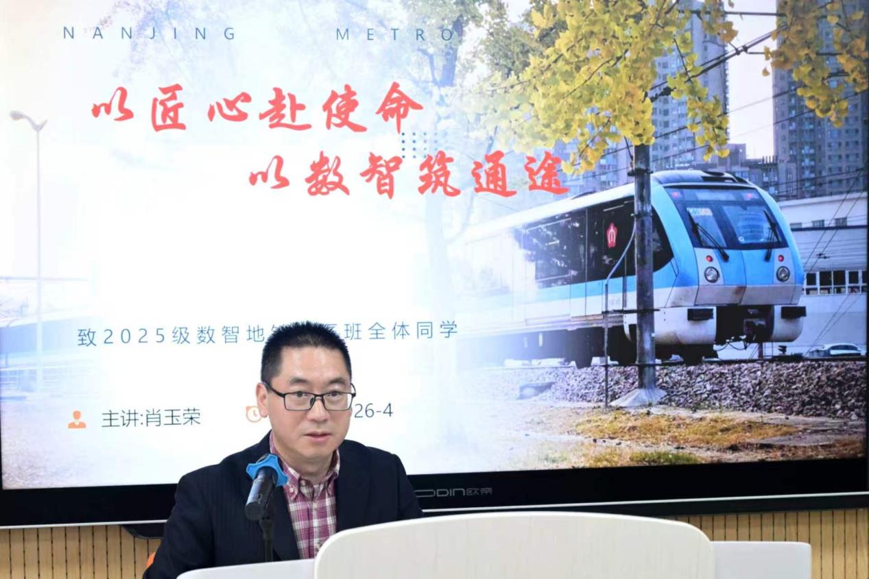 开班仪式后,肖玉荣以“匠心赴使命,数智筑通途”为主题讲授第一课。他带领同学们走进南京地铁的时光隧道,全面阐释了南京地铁“运营有道 心载人文”的企业文化。从525公里的城市动脉中,同学们读懂了南京地铁人的责任与担当;从糖果车站、博爱车站的暖心故事里,感受到了人文地铁的温度与情怀;从李志强工匠的成长蜕变中,领悟了执着专注、精益求精的工匠精神;从校企协同、四维融入、半军事化管理的培养体系中,更加坚定了未来三年的成长路径。