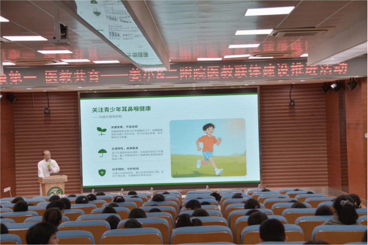 作为学校健康副校长,南医大二附院耳鼻喉头颈外科主任程友,还带来《守护成长:青少年常见耳鼻喉科疾病》专题讲座,结合青少年高发病症普及防护知识,让老师和家长都受益匪浅。