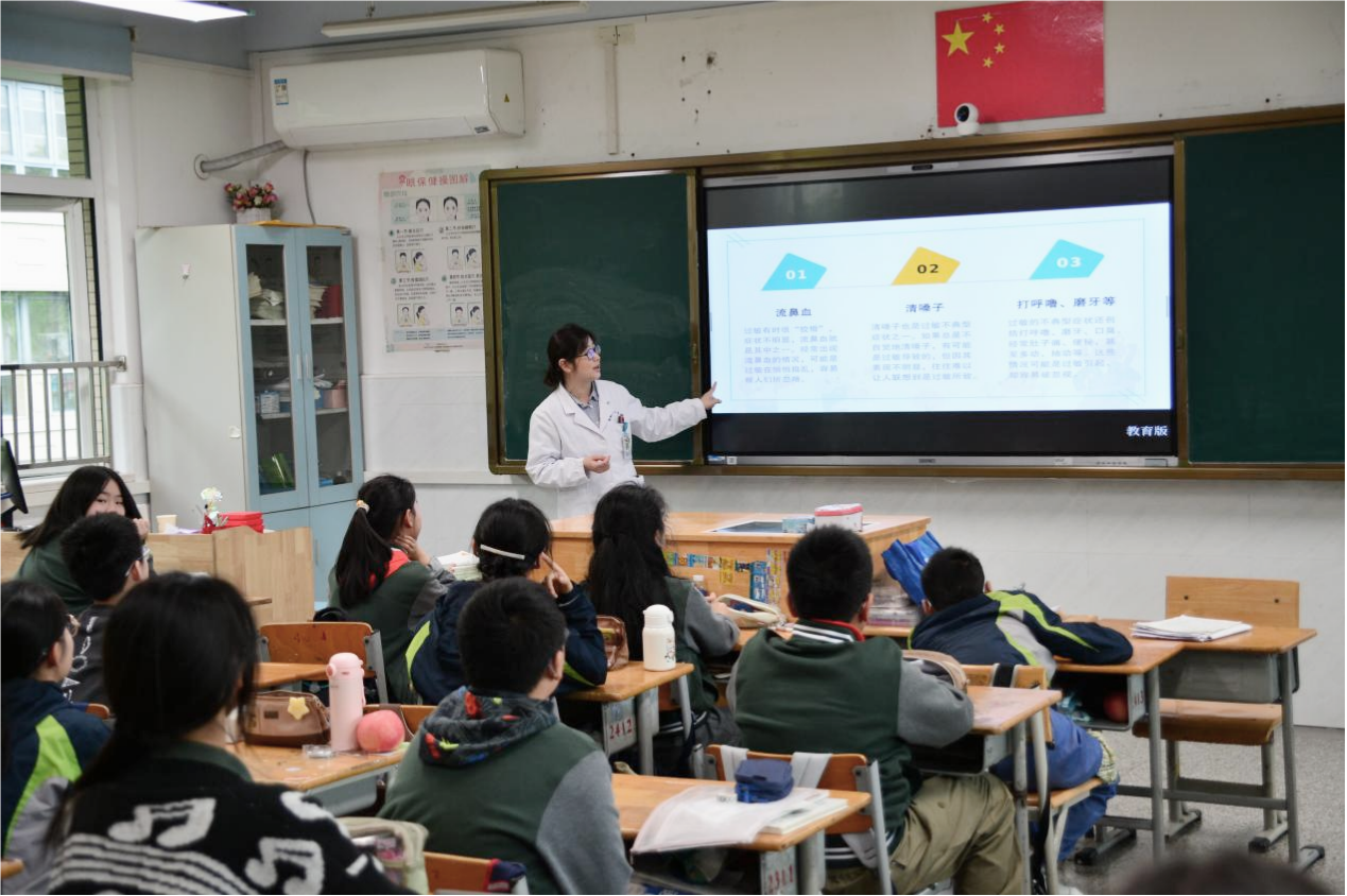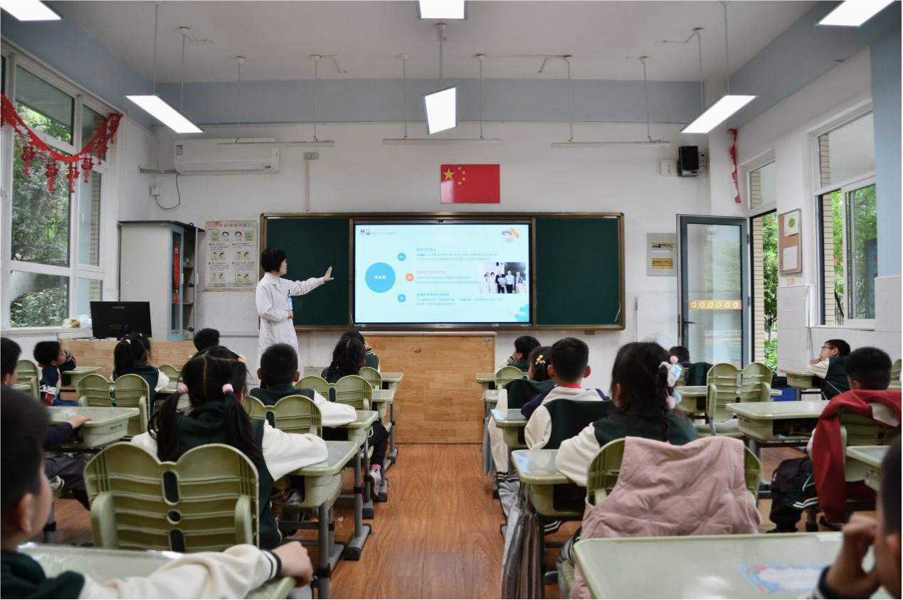 低年级课堂上,医生们用卡通动画、互动问答的形式,教小朋友“告别小胖墩”“守护小牙齿”;中年级教室里,“流感大作战”“身体小卫士”等主题课程通过情景模拟,让孩子们掌握伤口护理、肠道健康知识;高年级课堂则聚焦成长烦恼,“抓住长高黄金期”“过敏那些事儿”等课程,帮学生们解决身高管理、过敏性疾病等困惑。医护人员用通俗易懂的语言拆解专业知识,让原本枯燥的健康课变得生动有趣。