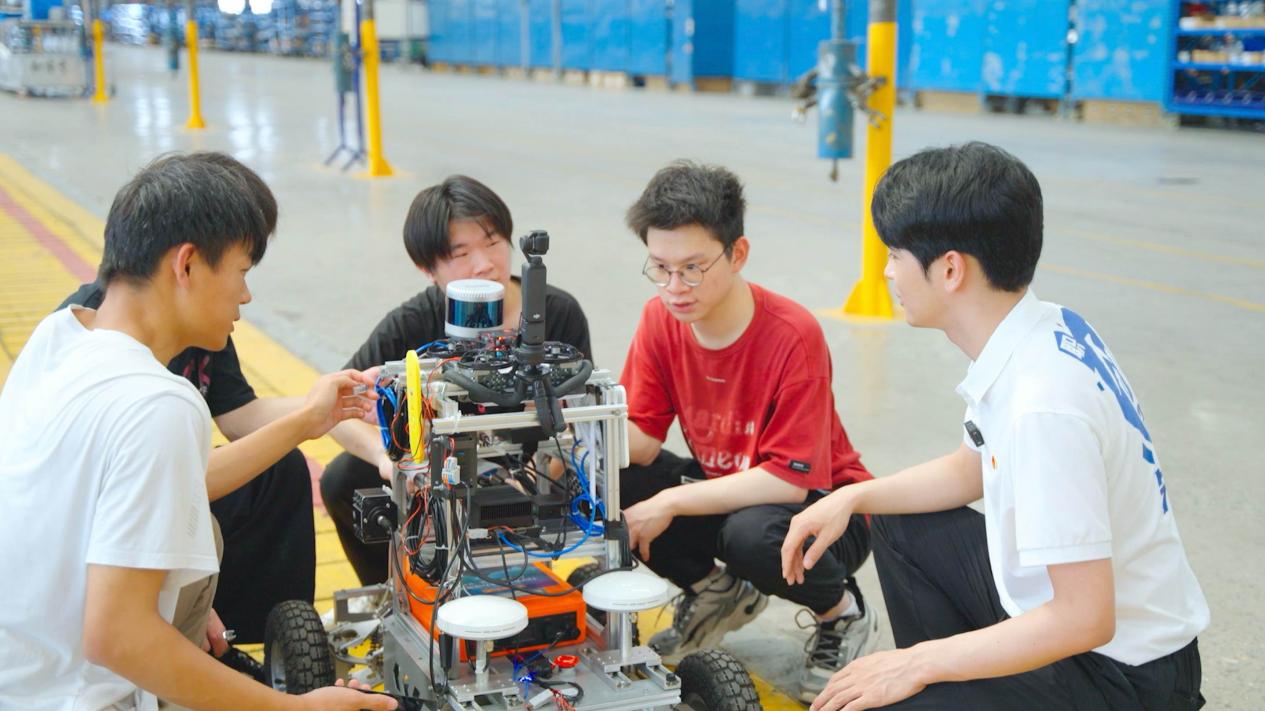 实践最后一站走进长安汽车的焊接车间与总装车间,“技术探索”迈向纵深。在自动化生产线上,机械臂精准焊接、AGV小车有序转运,智能工程学院陈绍良感叹道:“车间里的每一条流水线,都是‘智能制造’的生动教材,比课本描述更震撼。”队员们还观察到车间的“人机协作”模式——工人与机器各司其职,既保留人工的灵活判断,又发挥机器的精准高效。总装车间里,不同岗位上都有学校长安汽车订单班学生专注工作的身影,队员们远远看着熟悉的学长学姐身着工装熟练地操控设备参数、与AGV小车协同完成零件装配,无不心生敬佩。