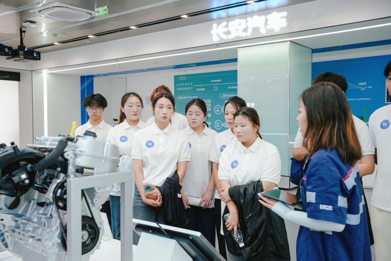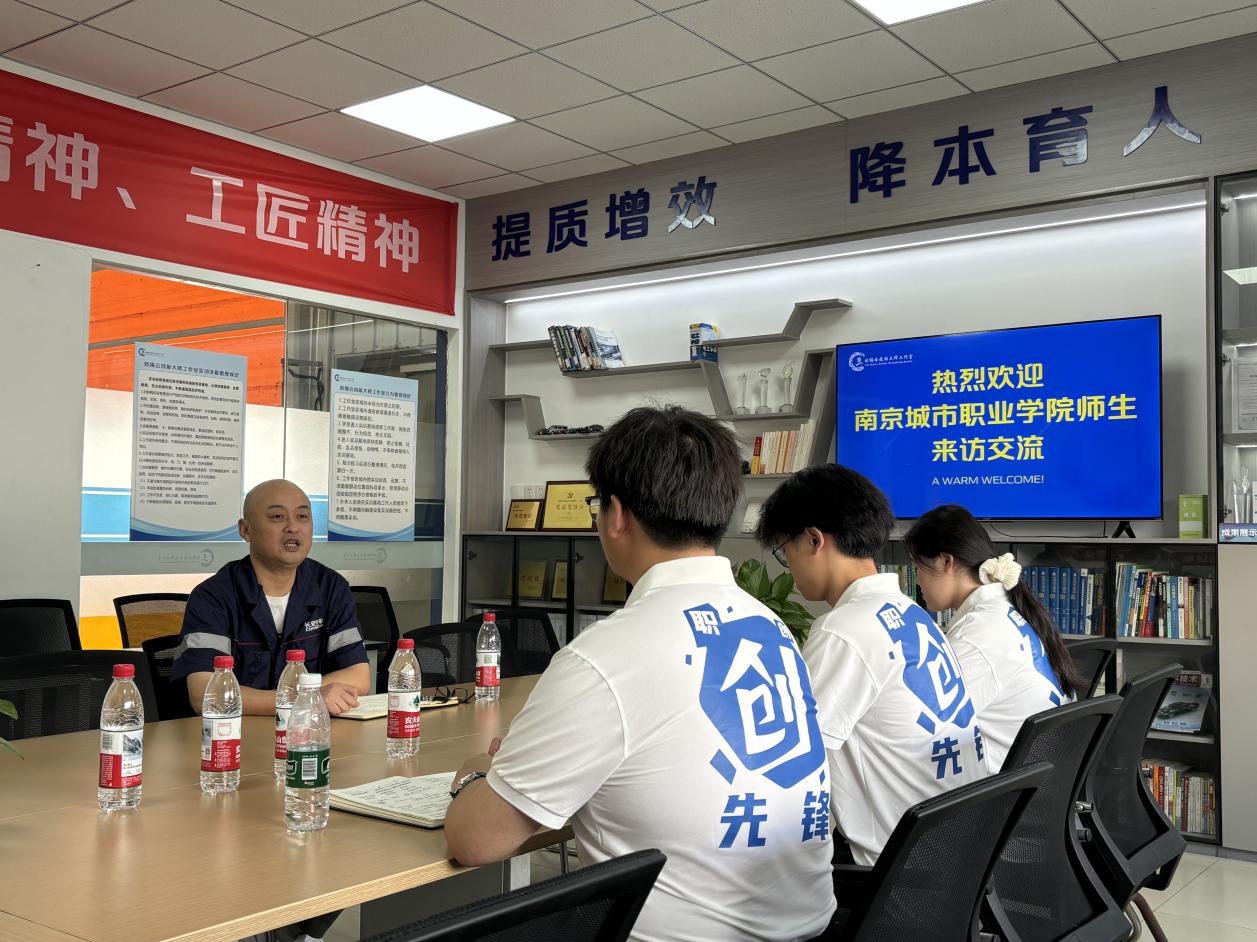 随后,实践队与南京长安汽车首席技术专家刘锡云展开面对面交流。谈及新能源汽车行业的人才培养,刘锡云提到“职业技能竞赛里的‘模拟生产线调试’‘故障快速排查’等项目,就是车间真实场景的浓缩。企业招人时,往往会格外关注有竞赛经历的学生。不是因为奖项本身,而是因为这类学生通常具备‘精准操作’的严谨性和‘突破常规’的创新力,这正是‘人机协作’模式下最需要的品质。”队员们在交流中逐渐明白,在智能制造的浪潮中,“懂技术、能竞技、善协作”才是站稳脚跟的核心竞争力。