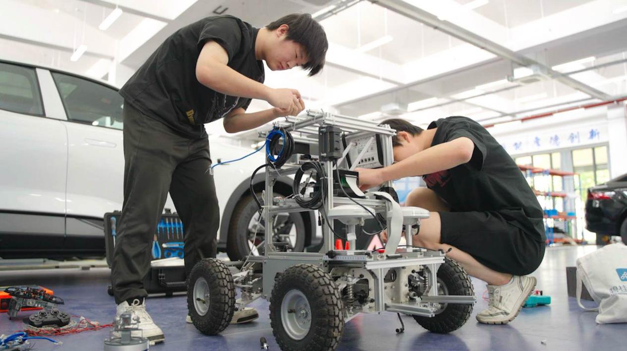 开沃总装车间的参观,成为“技术探新行动”的核心环节。设计工程师带着队员们走过流水线,从底盘组装到智能网联系统调试,一步步解析“一辆新能源汽车的诞生记”。电子信息工程技术专业的熊芳菲在总装线末端驻足:“从零部件到整车下线,每一秒都在演绎‘智能制造’的效率美学。”