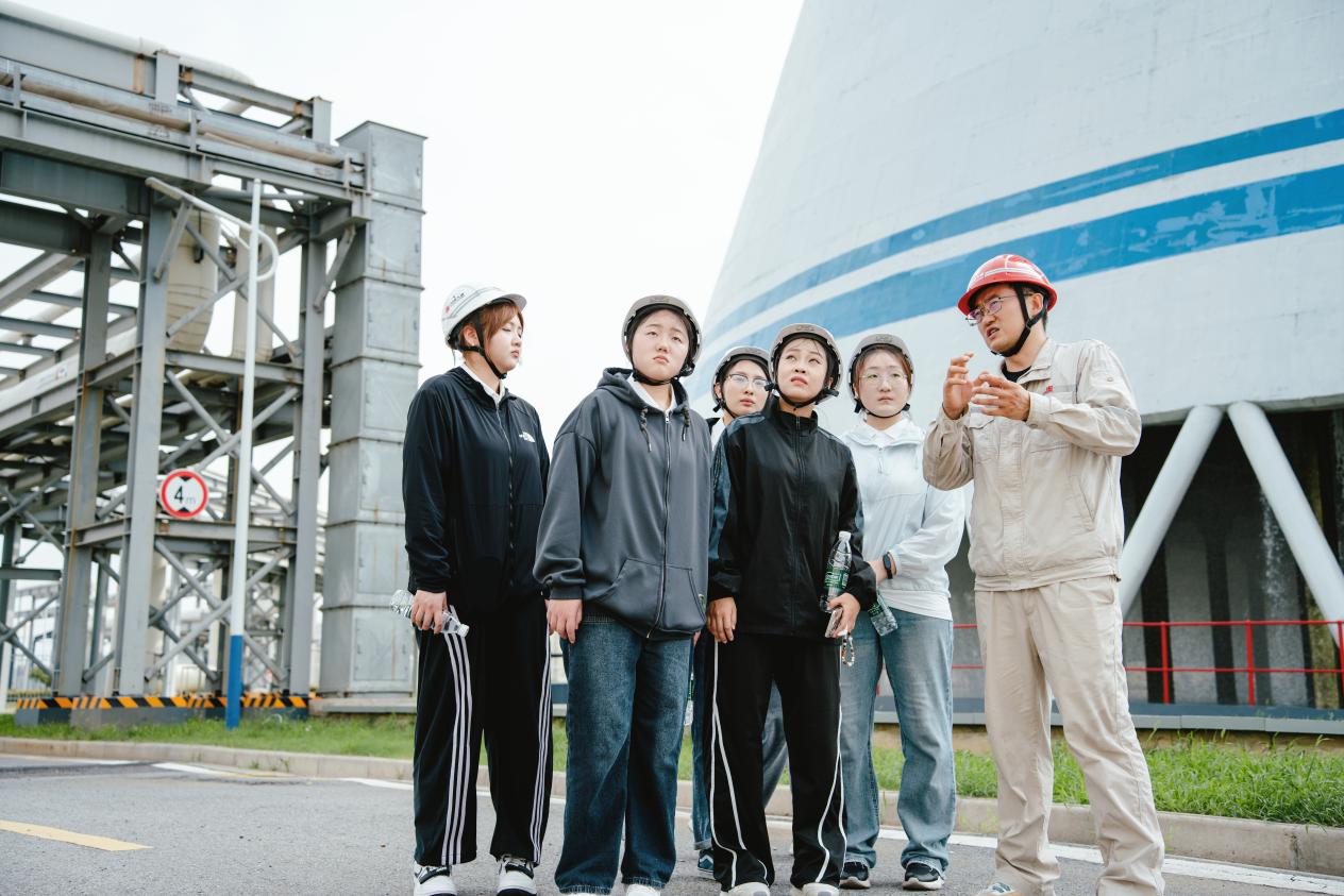 大唐热电之行,恰逢高温天气。在轰鸣的发电机组旁,热浪与工人们的热忱交织。队长陈英占看着巡检人员认真记录仪表数据,深有感触:“‘热电’二字,既指能源形态,更藏着‘热血奉献’的精神——这是比技术更动人的传承。”大唐热电之行让队员们对“科技创新”有了更立体的理解。在新能源与传统能源协同运转的厂区,同学们看着光伏板与发电机组并列工作,深有感触:“这就是‘科教兴国’的具象化——既传承传统产业的根基,又注入新能源的活力。”