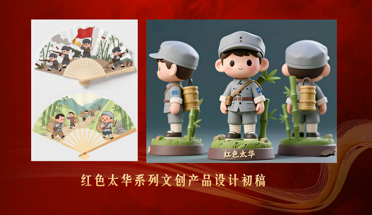 以红色舞台剧为例,考察团对馆方现有的场馆调研发现,三到五人的小型舞台剧更为适合。考察团决定围绕在粮食极其短缺的荒年,宁愿全家吃野菜、咽观音土,当地百姓也要把宝贵的粮食留给新四军后代的故事,开发《寻亲》舞台短剧,相关剧本已经初步形成。红色文创方面,第一期红色竹扇、红色搪瓷人偶、冰箱贴也已经初步设计完成。