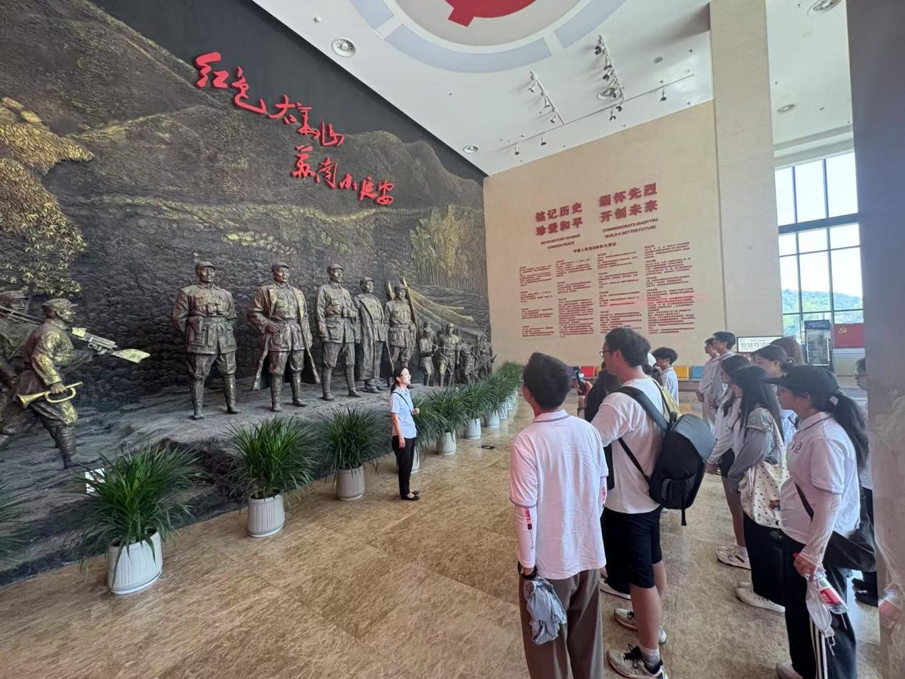 暑期调研考察团队随后来到宜兴太华山新四军和苏南抗日根据地纪念馆参观调研,全面了解纪念馆对抗战史的展陈和资源开发情况。纪念馆巧妙地将襄王古道化为馆内一楼通向二楼的台阶,台阶两侧种上人工竹林,较好地还原了当地百姓通过山道,向新四军主力部队积极运粮的场景。调研团成员高薇同学表示,这段军民鱼水情的故事,生动讲述了江山就是人民,人民就是江山。我们当代大学生更应传承新四军的铁军精神,将爱国心、报国志融入学习与生活中。