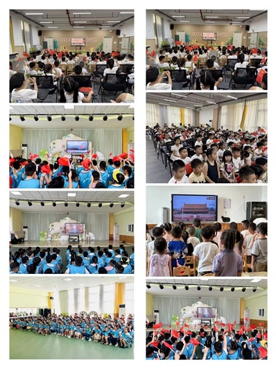 阅兵仪式正式开始,孩子们或齐聚多功能厅,或守候在班级屏幕前,一张张稚嫩的脸庞洋溢着期待。当威武雄壮的受阅方阵如移动的长城般走过天安门广场,当一架架战鹰呼啸着掠过湛蓝的天空,当一辆辆新型装备震撼亮相,孩子们睁大亮闪闪的眼睛,不时发出“哇”的惊叹声。他们兴奋地交流着自己的发现,那一颗颗纯真的童心,跟随着铿锵有力的步伐声跳动,沉浸在盛大阅兵的震撼与感动中,爱国的情愫在幼小的心灵中悄然生长。