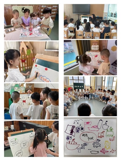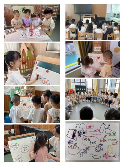观看结束后,“小小阅兵讨论会” 热闹开启。孩子们围坐一团,热烈分享所见所感,老师用彩色画笔将童言稚语绘制成思维导图,红色情怀如春风化雨,滋润着每一颗纯真童心。