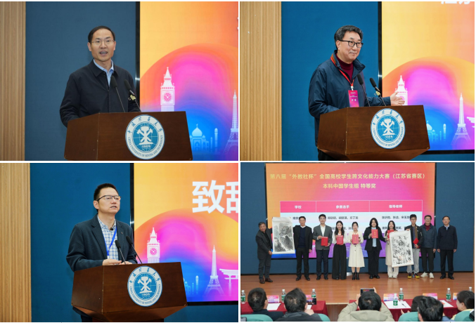 “外教社杯”全国高校学生跨文化能力大赛入选教育部中国高等教育学会《2023全国普通高校大学生竞赛分析报告》竞赛目录,江苏省赛区比赛被江苏省高等教育学会认定为 2025年全省普通高校本专科生学科竞赛省级赛事(苏高教会〔2025〕26号)。本次大赛设置了本科中国学生组、高职中国学生组和国际学生组,来自省内70所高校的81支团队、200余位选手参加角逐。经过两天紧张而激烈的复赛与决赛,大赛共评选出特等奖9项、一等奖20项、二等奖28项,各组别特等奖选手晋级全国决赛。(获奖和晋级名单见附件)