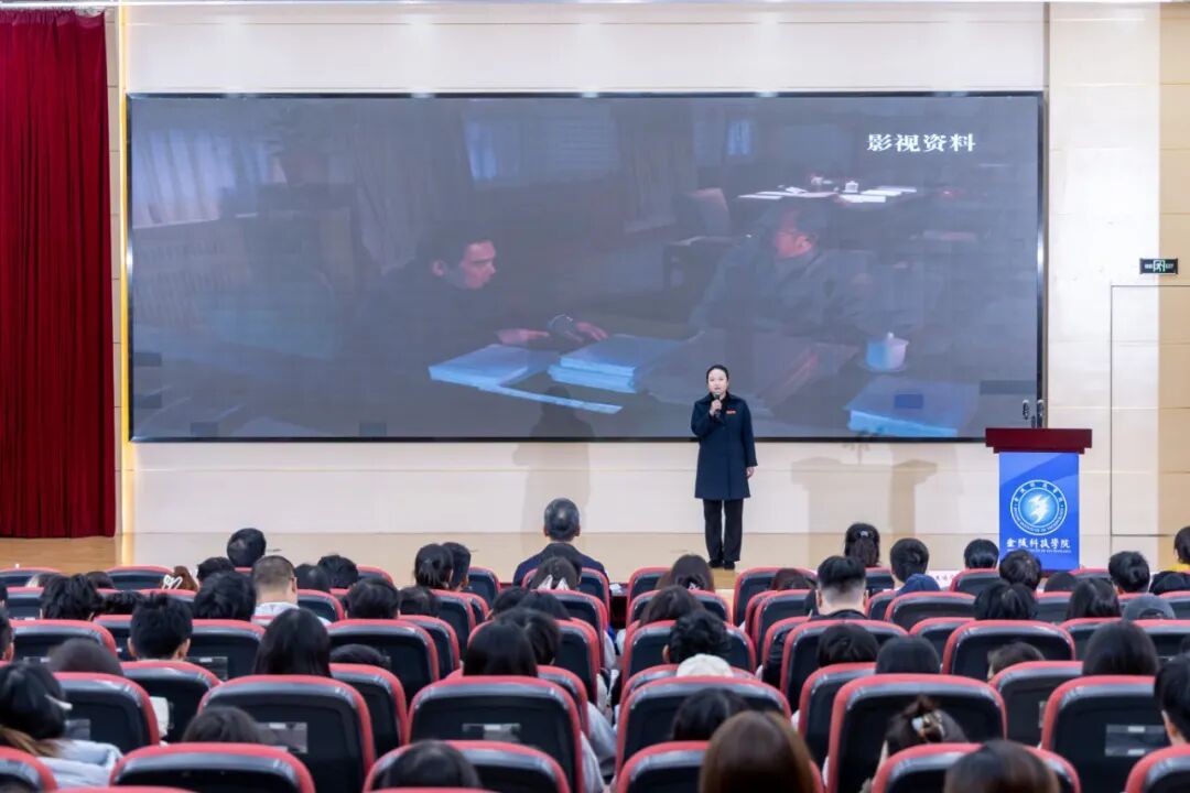 两所纪念馆向学校赠送了一批红色书籍,并带来了思政微课《周恩来“过五关”崇高风范情景故事》、党史宣讲《延安的怀抱》等节目展示,以饱含深情的讲述传递了共产党人坚守初心、廉洁奉公的精神内核。全体人员集中观看了人物纪录片《把一切献给教育》,深切体悟学校前身之一——金陵职业大学首位校长朱刚“坚守初心、潜心育人”的奉献情怀,进一步筑牢“廉洁从教、廉洁修身”的思想根基与责任意识。校大学生艺术团成员深情朗诵《海棠花祭》,用饱含敬意的语调追忆周恩来同志的高尚品格与家国情怀。