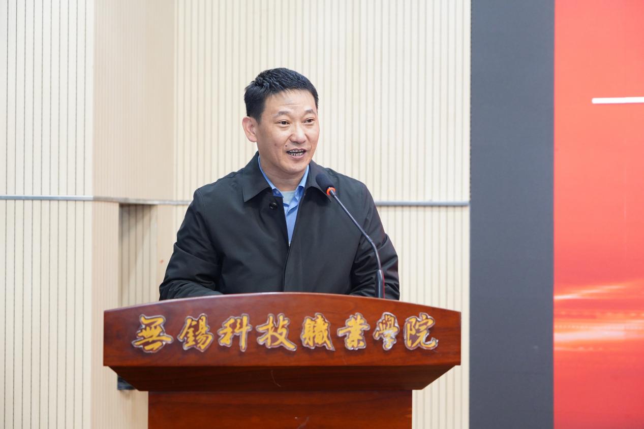 无锡科技职业学院副校长王锡刚在讲话中对各方支持表示感谢。他指出,此次活动是落实国家安全教育要求的具体行动,是发挥高校专业优势服务地方发展的重要实践,更是推动“三全育人”、打造校园安全文化品牌的有益探索。他指出,新吴区大学生安全志愿服务基地是学校与社会协同育人的重要载体,希望宣讲团以此为契机,将专业课堂延伸到社区、企业一线,在真实场景中提升能力、贡献价值。他对宣讲团及与会同学们提出四点希望:要“学在前面”,当好安全知识的“明白人”;要“讲在一线”,当好安全文化的“传播者”;要“做在日常”,当好安全行为的“示范者”;要“冲在前列”,当好平安校地建设的“生力军”,共同守护平安校园的亮丽底色。