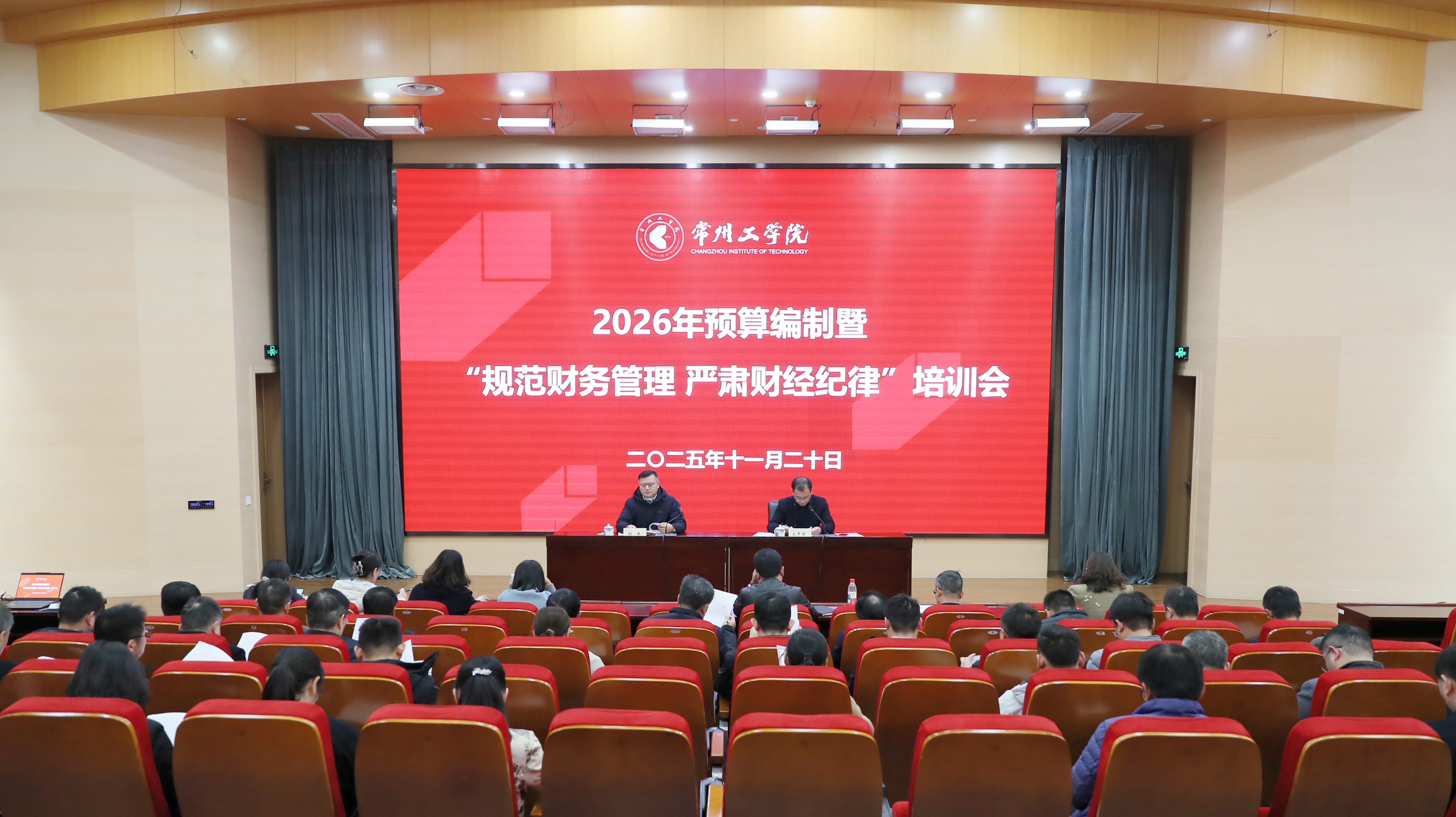 11月20日,常州工学院召开2026年度校内预算编制暨“规范财务管理 严肃财经纪律”培训会。校党委副书记、校长张兵出席并讲话,计划财务处处长毛中健主持会议。