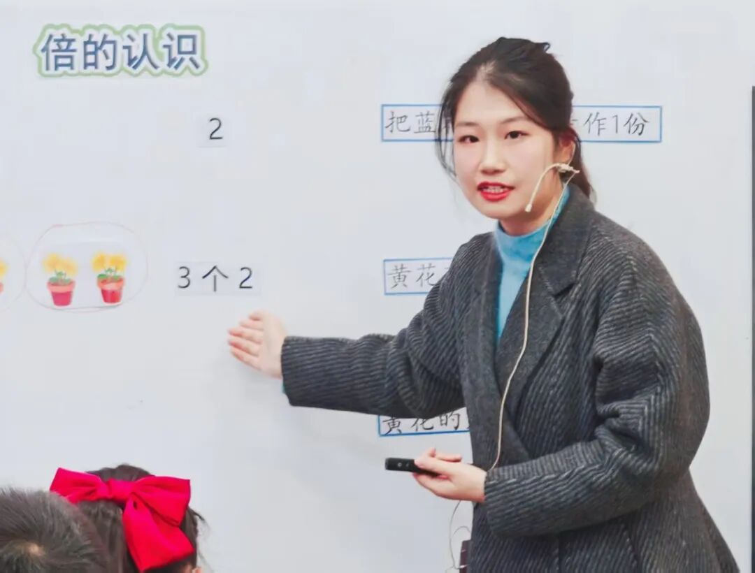无锡市梅村实验小学戴心瑜老师执教《倍的认识》,以趣味数青蛙游戏开场,创设灵动情境,沿着“定标准—圈份数—知倍数”的主线,在层层对比中助力学生筑牢概念根基。