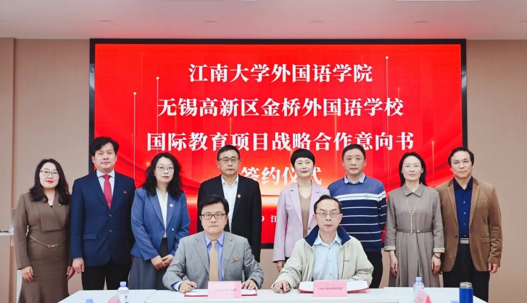 4月9日下午,无锡金桥教育集团与江南大学外国语学院国际教育项目战略合作签约仪式,在江南大学外国语学院举行。