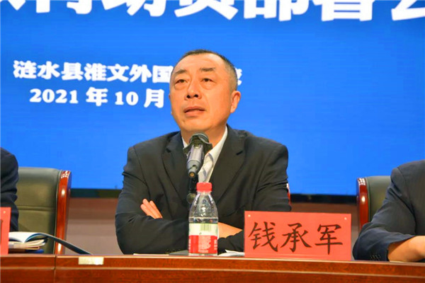 涟水县教育体育局钱承军主任在讲话中就淮文外国语学校教师师德师风建设提出三个要求:继续以“德雅”文化为引领,做品德高尚的人;加强学习,丰富专业知识,做知识渊博的人;讲政治,讲奉献,做令行禁止、听从指挥的人。